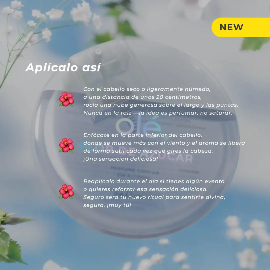 Convierte cada movimiento de tu cabello en una experiencia sensorial inolvidable. El Perfume Capilar Flor de Azúcar de Ole te ofrece una fragancia suave, femenina y duradera, sin maltratar tu pelo gracias a su fórmula sin alcohol. Ideal para llevar a todas partes con su estuche de goma morado.
