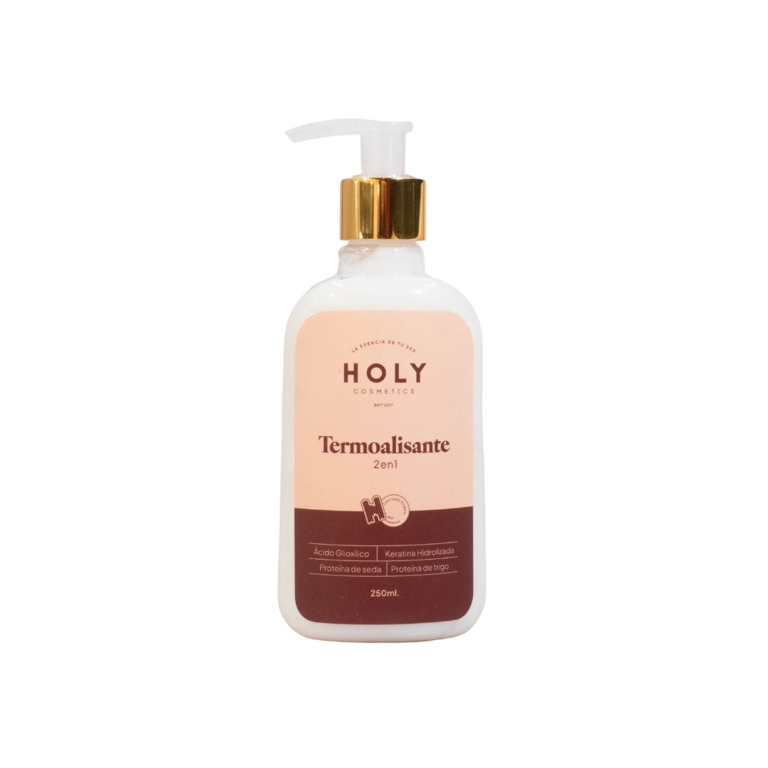El Termoalisante 2 en 1 de Holy Cosmetics es el escudo invisible que tu cabello necesita frente al calor de planchas, rizadores y secadores. Su fórmula avanzada no solo protege las hebras del daño térmico, sino que también alisa, suaviza y facilita el peinado, dejando tu melena con un acabado de salón, sedoso y duradero.
